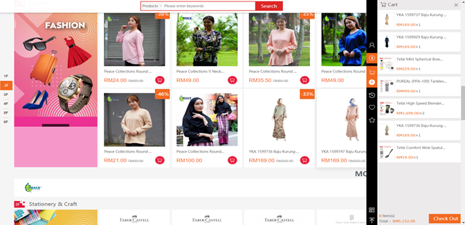 • You can add the products into your cart by clicking on the trolley icon.