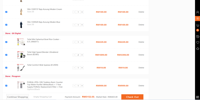 • Tap on the [Check Out] button and it will direct you to the Cart List.