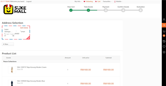 • After clicking on [Buy Now], you will be directed to the product list. Select or add your address.