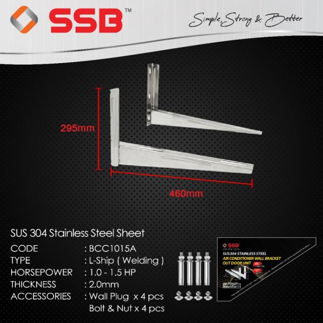 PRODUCT DETAIL OF SSB SUS304 STAINLESS STEEL L-SHIP OUTDOOR BRACKET 1.0-1.5HP MODEL: BCC1015A C/W S/S304 BOLT AND NUT & WALL PLUG (WELDING TYPE)