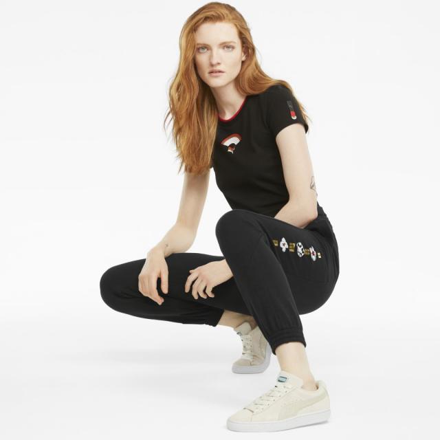 - Gold foil rubber print combination  (CW 51, 02) PUMA Cat logo metallic foil gold print (CW01) Colorblock as design element (CW 01) PUMA Cat woven label on back pocket